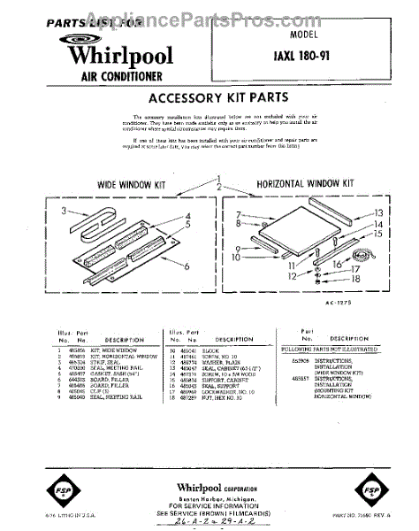 Parts for Whirlpool 1AXL18091: 01 - Accessory Kit Parts