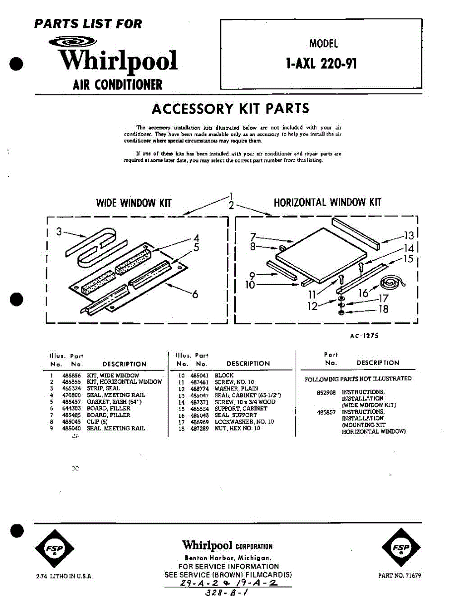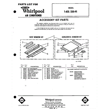 Parts for Whirlpool 1AXL22091: 01 - Accessory Kit Parts