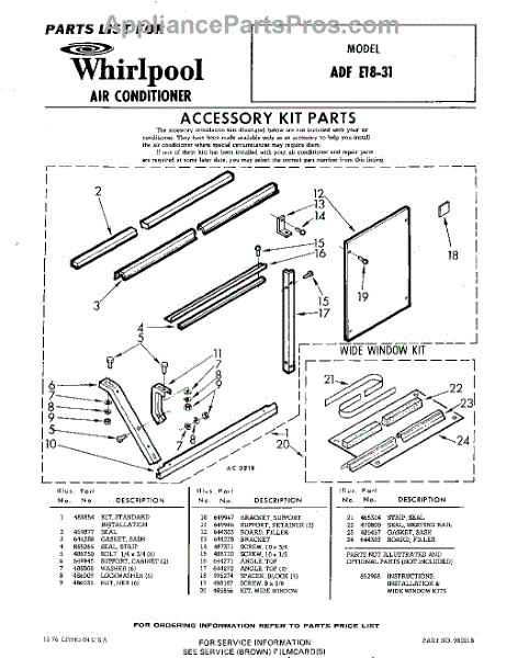 Whirlpool Air Conditioner Parts