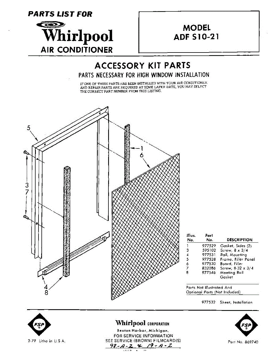 Parts for Whirlpool ADFS1021: 01 - Accessory Kit Parts