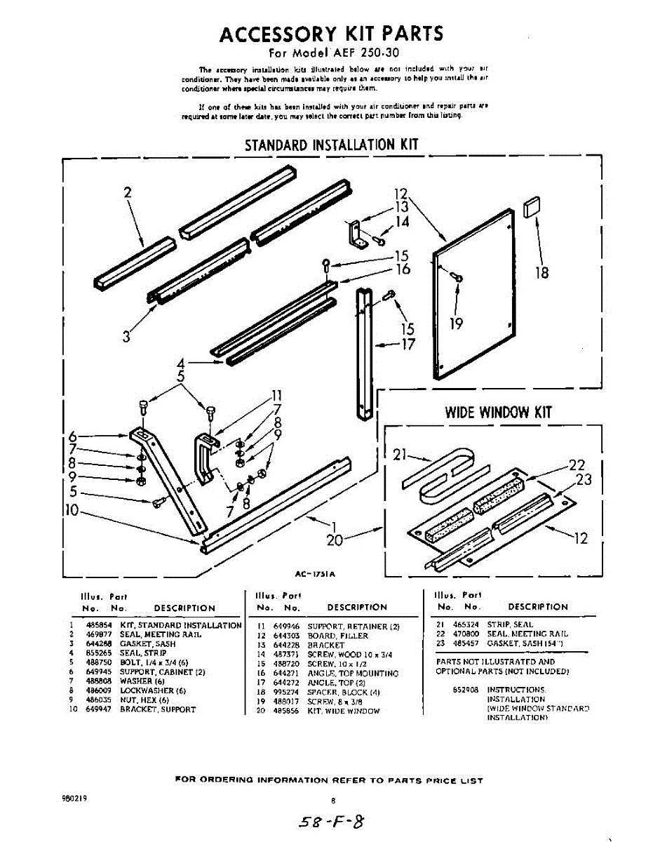Parts for Whirlpool AEF25030: 08 - Accessory Kit Parts