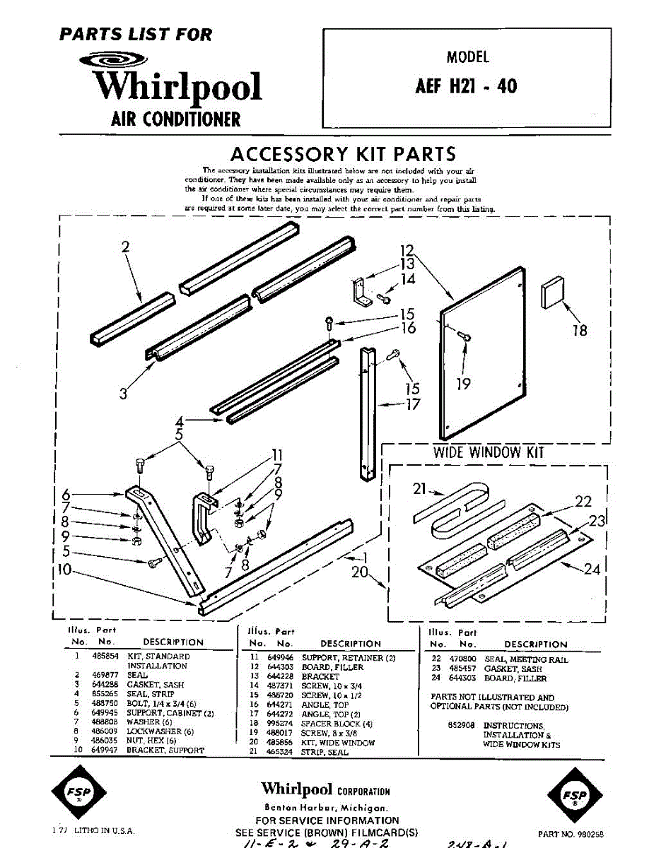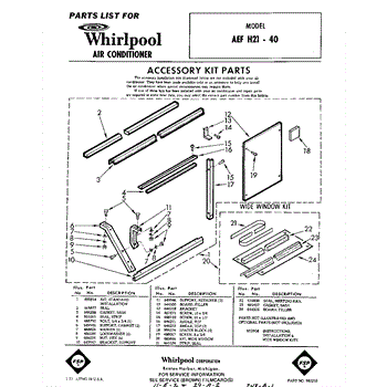 Parts for Whirlpool AEFH2140: 01 - Accessory Kit Parts