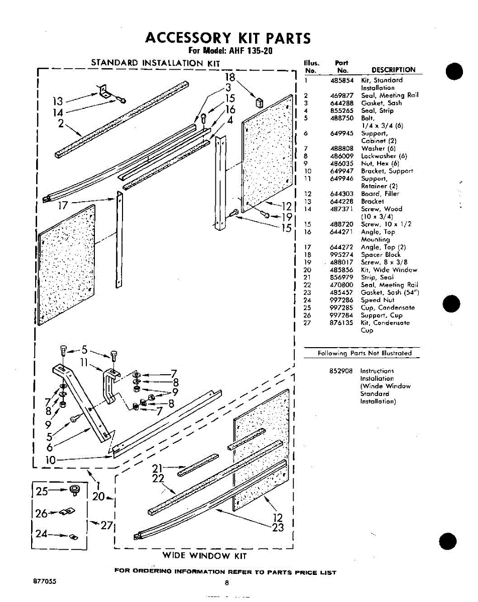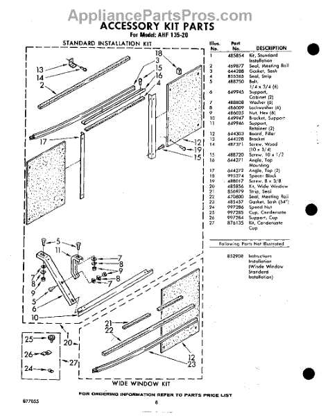 Parts for Whirlpool AHF13520: 08 - Accessory Kit Parts