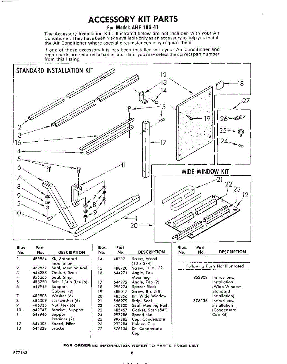 Parts for Whirlpool AHF18541: 08 - Accessory Kit Parts