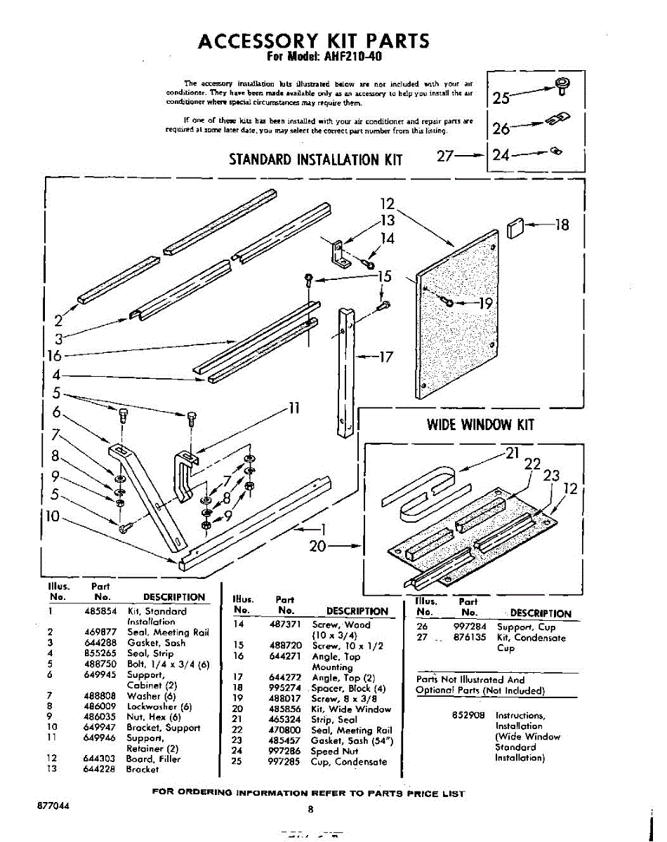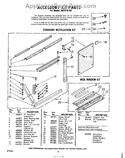 Parts for Whirlpool AHF21040: 08 - Accessory Kit Parts