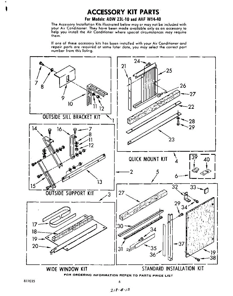 Parts for Whirlpool AHFW1440: 06 - Accessory Kit Parts