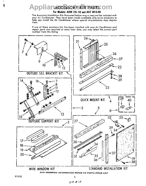 Parts for Whirlpool AHFW14J0: 06 - Accessory Kit Parts