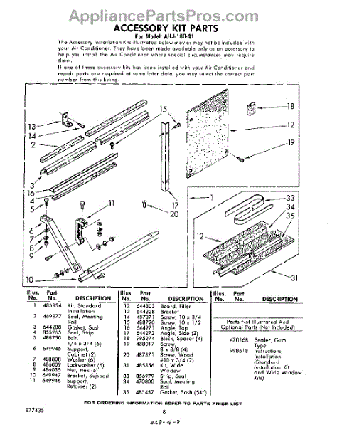 Parts for Whirlpool AHJ18041: 08 - Accessory Kit Parts