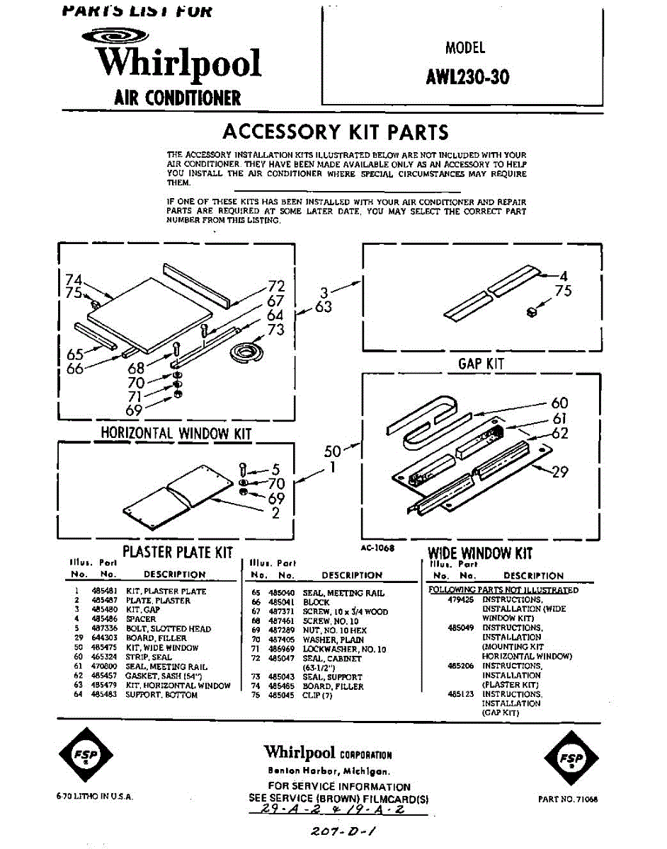 Parts for Whirlpool AWL23030: 01 - Accessory Kit Parts