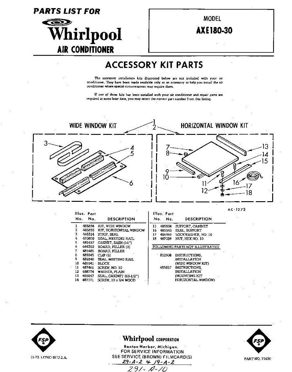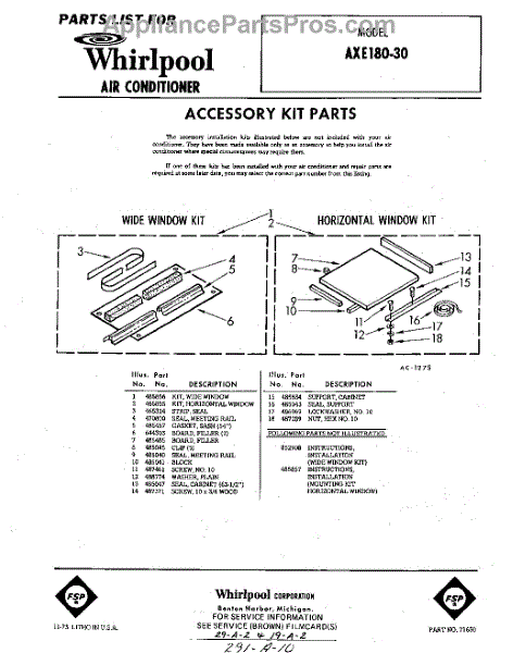 Parts for Whirlpool AXE18030: 01 - Accessory Kit Parts