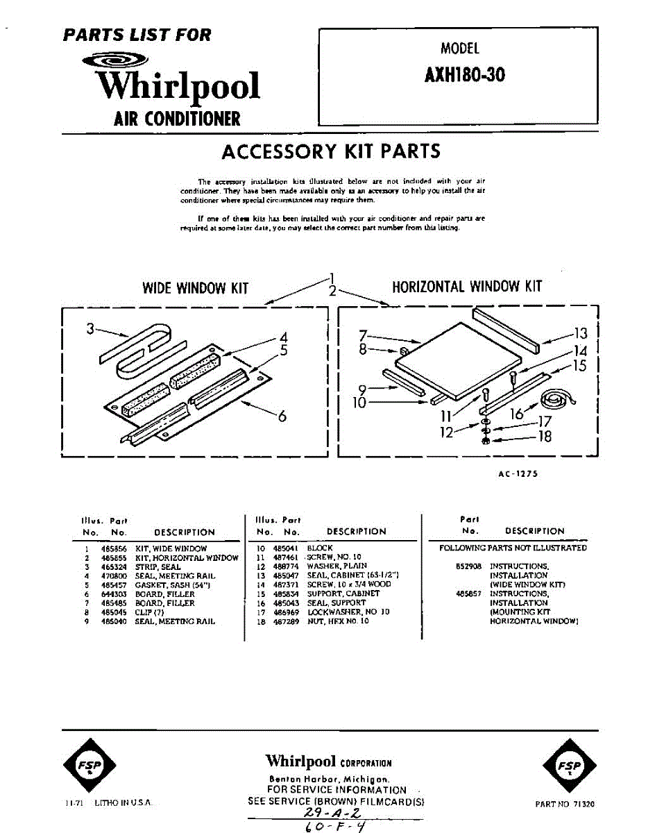 Parts for Whirlpool AXH18030: 01 - Accessory Kit Parts