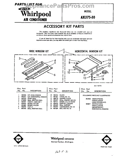 Parts for Whirlpool AXL17530: 01 - Accessory Kit Parts