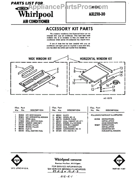 Parts for Whirlpool AXL21030: 01 - Accessory Kit Parts