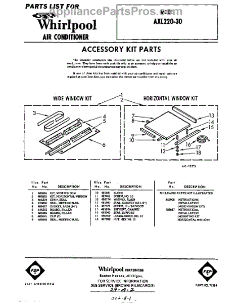 Parts for Whirlpool AXL22030: 01 - Accessory Kit Parts