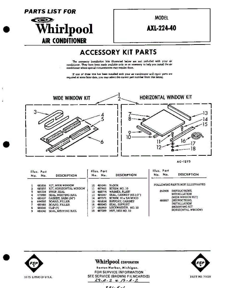 Parts for Whirlpool AXL22440: 01 - Accessory Kit Parts