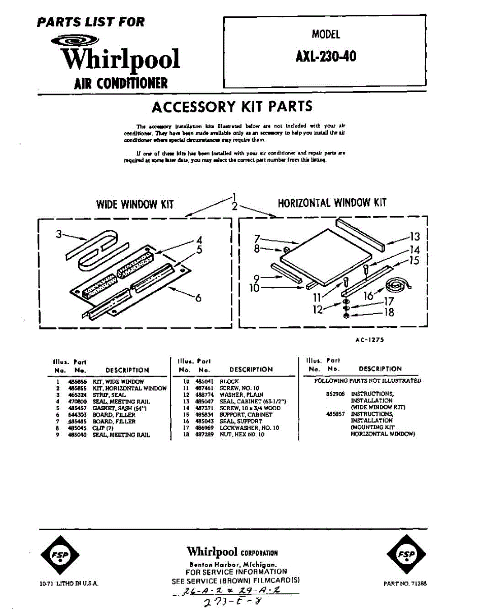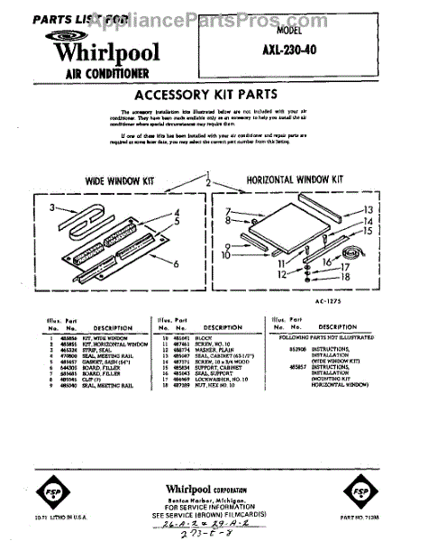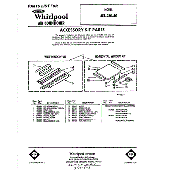 Parts for Whirlpool AXL23040: 01 - Accessory Kit Parts