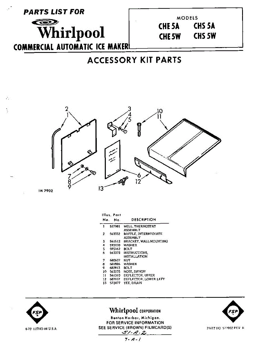 Parts for Whirlpool CHS5A: 01 - Accessory Kit Parts