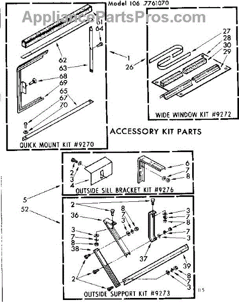 Parts for Kenmore 106.7761070 (1067761070, 106 7761070): Accessory Kit Parts