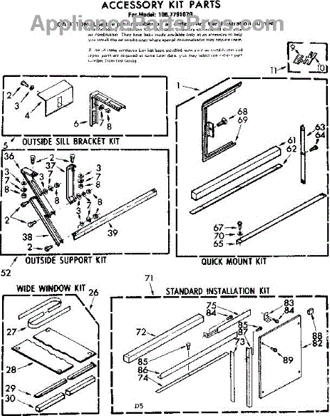Parts for Kenmore 106.7791070 (1067791070, 106 7791070): Accessory Kit Parts
