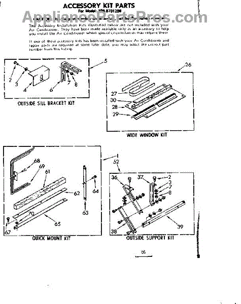 Parts for Kenmore 106.8701290 (1068701290, 106 8701290): Accessory Kit Parts