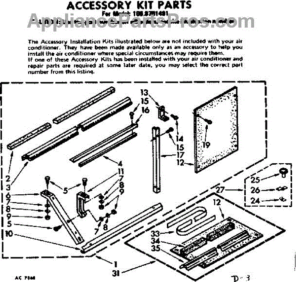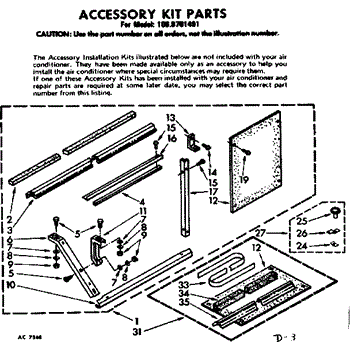 Parts for Kenmore 106.8701491 (1068701491, 106 8701491): Accessory Kit Parts