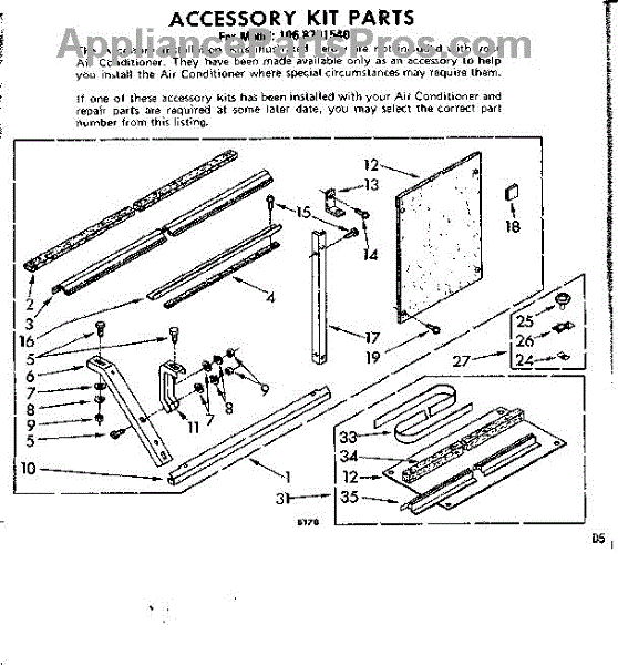 Parts for Kenmore 106.8701540 (1068701540, 106 8701540): Accessory Kit Parts