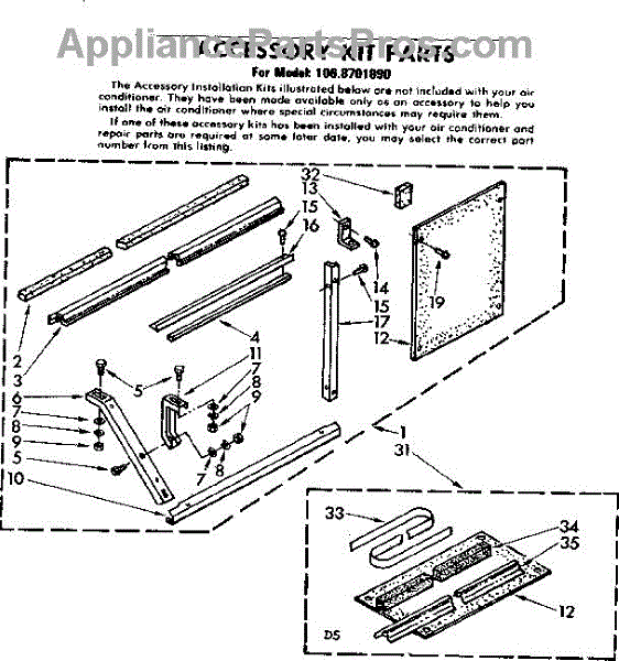 Parts for Kenmore 106.8701890 (1068701890, 106 8701890): Accessory Kit Parts