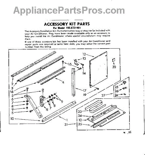 Parts for Kenmore 106.8721491 (1068721491, 106 8721491): Accessory Kit Parts