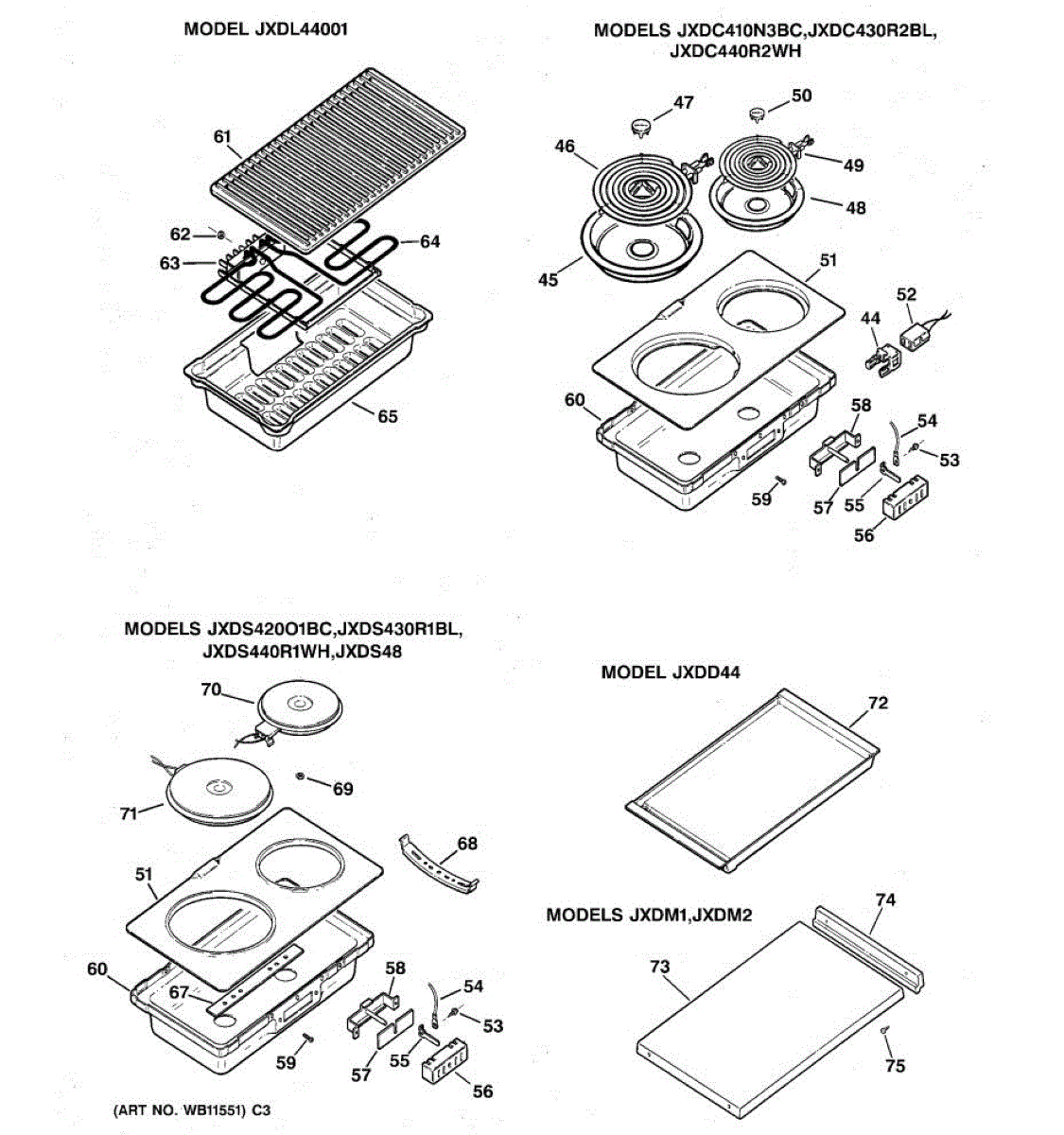 This OEM replacement part is a grill unit assembly for the cooktops. The grill unit assembly is the coil assembly that heats the stove grill. It provides the heat used to cook on the stovetop grill. Over time, due to excessive wear and tear, the grill unit can become inoperable. If the grill on the stovetop is no longer heating or turning on, it might be time to replace it. Luckily, replacing this part is a fairly simple process.To begin, start by unplugging the stove. After the power has been cut, lift the grill top grates from the stove. Once removed, locate the grill unit and pull it outward to release the attached prongs connected to the stove. After releasing the old unit, align the new grill unit's prongs to the openings on the stove and attach them. Place the grate cover back over the grill unit and restore power to the appliance.This genuine replacement part is sold individually and is compatible with General Electric, Hotpoint, and RCA brand cooktops.