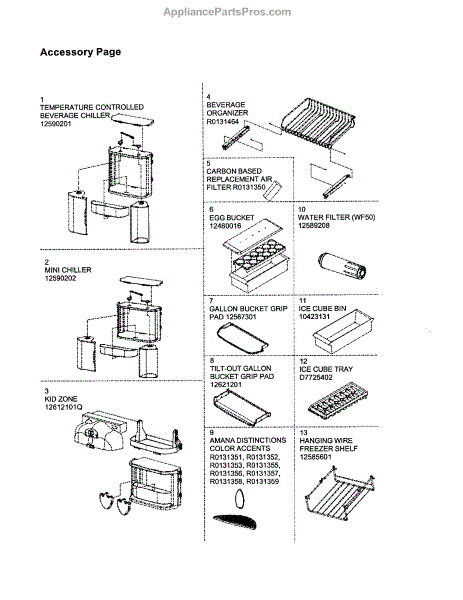 Parts for Amana DRS246RBW-PDRS246RBW0: Accessory Page Parts