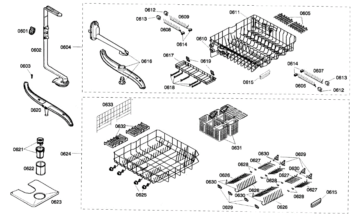 Lower dishrack assembly for dishwashers. Slides in and out for easy loading. Replace when cracked, rusted, or prongs are broken or missing.
