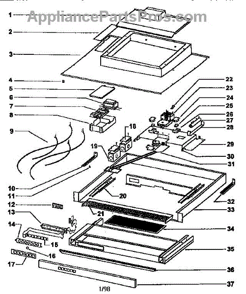 • Accessible from behind the control panel or door assembly depending on model; mounting screws and wire connectors must be handled gently