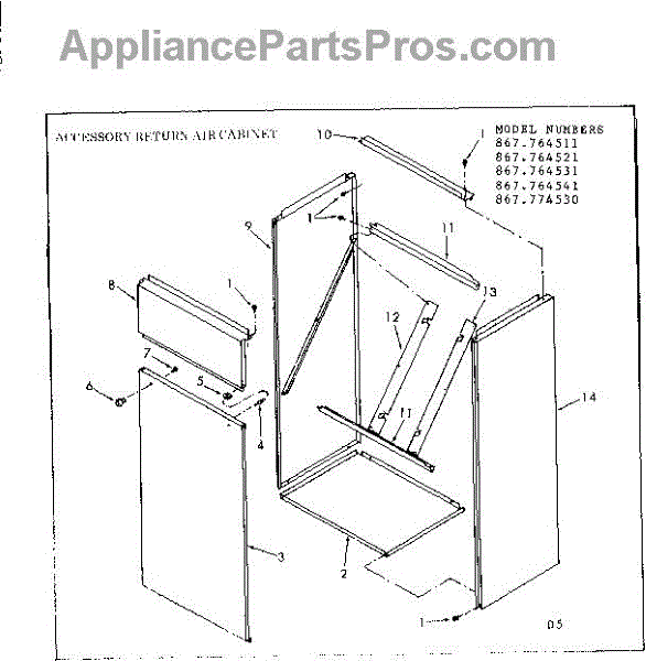 Parts for Kenmore 867.774530 (867774530, 867 774530): Accessory Return Air Cabinet Parts
