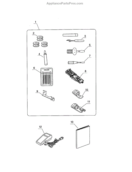 Parts for Kenmore 384.13016300 (38413016300, 384 13016300): Accessory Set / Foot Control Parts
