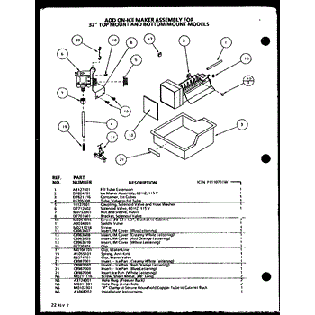 Parts for Amana 86061W-P1125512WW: Add On-Ice Maker Assembly (Ic3n / P1110701w) Parts