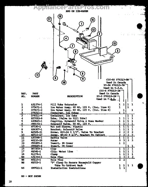 Parts for Amana BL20J-P7680818W: Add On Ice-Maker (Ic-3 / P76213-1W) (Cic-4 / P76213-2W) (Ic-3H / P76213-7W) (Cic-4H / P76213-8W) Parts