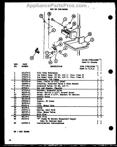 Parts for Amana IC3H-P7621305W-BM: Add On Ice-Maker (Ic3h / P7621305w) (Cic4h / P7621306w) Parts