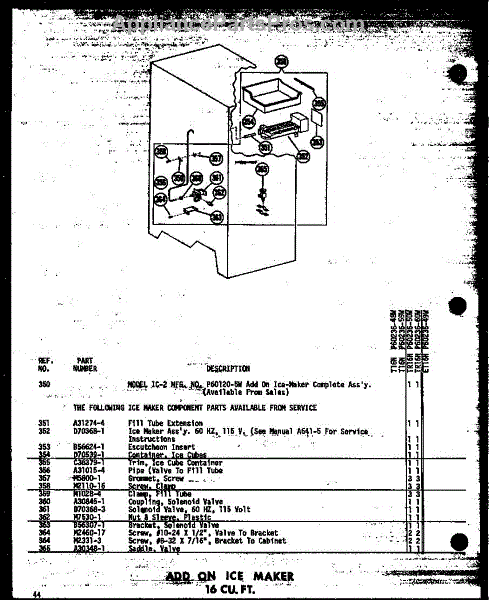 Parts for Amana TD20N-AG-P60236-64WG: Add On Ice Maker 16 Cu. Ft. (T16n / P60236-48W) (T16n-C / P60236-48Wc) (T16n-Ag / P60236-48Wg) (T16n-A / P60236-48Wa) (T16n / P60236-59W) (T16n-C / P60236-59Wc) (T16n-Ag / P60236-59Wg) (T16n-A / P60236-59Wa) (Tr16n / P60236-50W) (Tr16n-C / P60236-50Wc) (Tr16n-Ag / P60236-50Wg) Parts