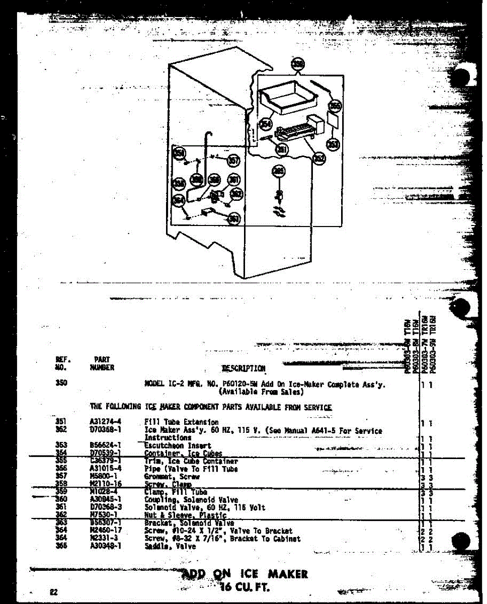 Parts for Amana TD23W-C-P60303-19WC: Add On Ice Maker 16 Cu. Ft. (T16w / P60303-6W) (T16w-C / P60303-6Wc) (T16w-Ag / P60303-6Wg) (T16w-A / P60303-6Wa) (T16w-C / P60303-8Wc) (T16w-A / P60303-8Wa) (T16w / P60303-8W) (T16w-Ag / P60303-8Wg) (Tr16w-C / P60303-7Wc) (Tr16w-A / P60303-7Wa) (Tr16w / P60303-7W) (Tr16w-Ag / P Parts
