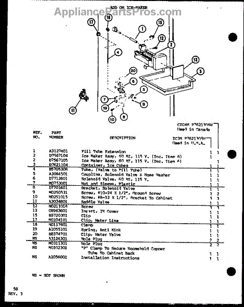 Parts for Amana TJ20K-P7791143W: Add On Ice-Maker (Ic3h / P7621305w) (Cic4h / P7621306w) Parts