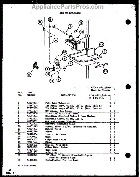 Parts for Amana TM16K-P7791110W: Add On Ice-Maker (Ic3h / P7621305w) (Cic4h / P7621306w) Parts