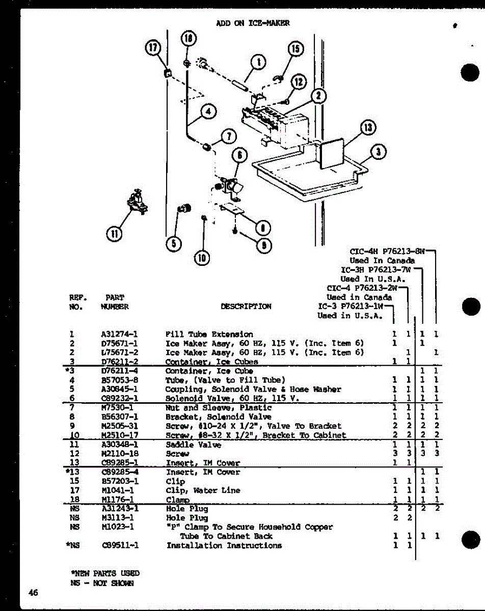 Parts for Amana TMI20H-P7711031W: Add On Ice-Maker (Ic-3 / P76213-1W) (Cic-4 / P76213-2W) (Ic-3H / P76213-7W) (Cic-4H / P76213-8W) Parts