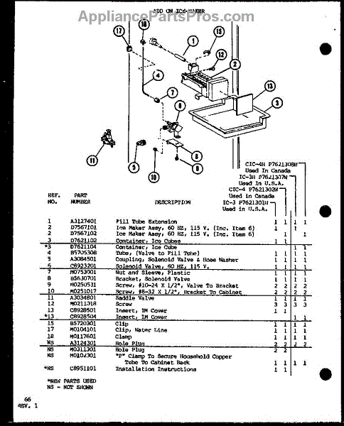 Parts for Amana TR20H-P7711014W: Add On Ice-Maker (Ic-3 / P7621301w) (Cic-4 / P7621302w) (Ic-3H / P7621307w) (Cic-4H / P7621308w) Parts