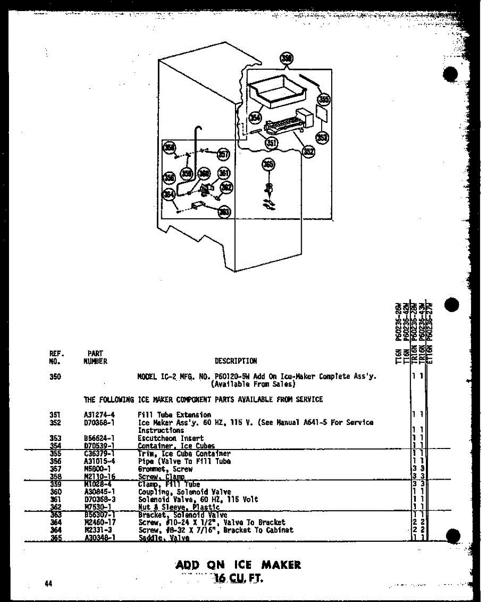 Parts for Amana TR20N-AG-P60236-32WG: Add On Ice Maker 16 Cu. Ft. (T16n / P60236-26W) (T16n-C / P60236-26Wc) (T16n-Ag / P60236-26Wg) (T16n-A / P60236-26Wa) (T16n / P60236-42W) (T16n-C / P60236-42Wc) (T16n-Ag / P60236-42Wg) (T16n-A / P60236-42Wa) (Tr16n / P60236-28W) (Tr16n-C / P60236-28Wc) (Tr16n-Ag / P60236-28Wg) Parts
