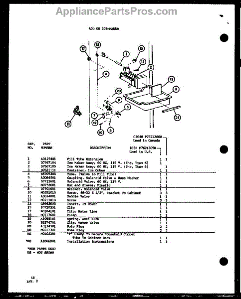 Parts for Amana TRI16K-P7791125W: Add On Ice-Maker (Ic3h / P7621305w) (Cic4h / P7621306w) Parts