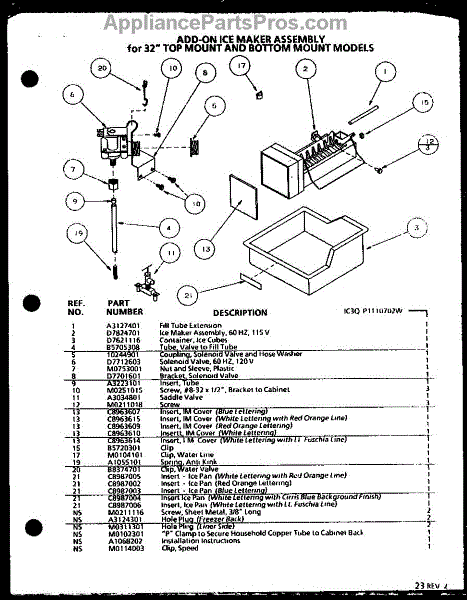 Parts for Amana 86068L-P1125513WL: Add On-Ice Maker Assembly Parts