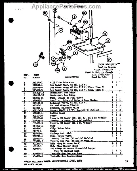 Parts for Amana BL20K-P7812504W: Add On Ice-Maker (Ic3k / P7621309w) (Ic3k / P7621310w) (Cic4k / P7621311w) Parts
