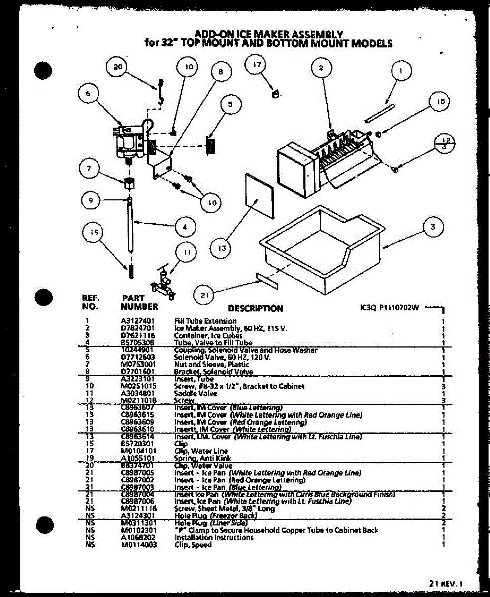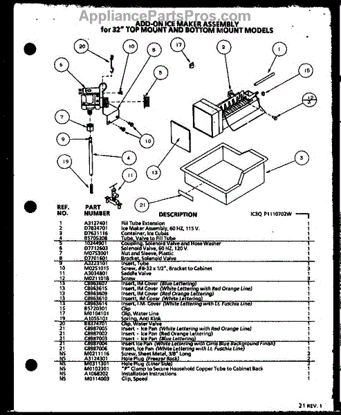 Parts for Amana BL20QW-P1125503WW: Add-On Ice Maker Assembly Parts