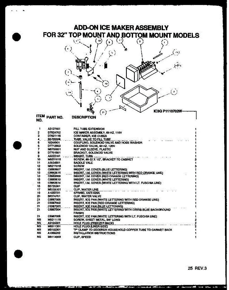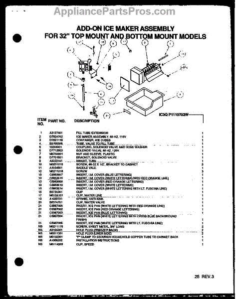 Parts for Amana BX20QG-P1125502WG: Add On-Ice Maker Assembly Parts