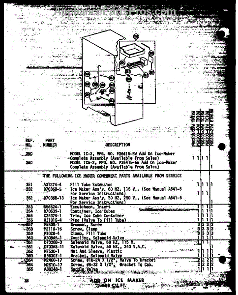 Parts for Amana ET16N-A-P60303-26WA: Add On Ice Maker 18 Cu. Ft. (Tm18w / P60303-35W) (Tm18w-C / P60303-35Wc) (Tm18w-A / P60303-35Wa) (Tm18w-Ag / P60303-35Wg) (Tm18w / P60303-40W) (Tm18w-A / P60303-40Wa) (Tm18w-C / P60303-40Wc) (Tm18w-Ag / P60303-40Wg) (Tc18w-C / P60303-36Wc) (Tc18w-A / P60303-36Wa) (Tc18w / P603 Parts